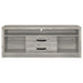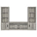 Design the entertainment mecca you've always imagined with this three-piece media center. Including a central TV stand and two media towers, the set delivers simplicity of silhouette with plenty of storage options to accommodate your needs. Gray driftwood finish laminate surfaces are durable and resistant to scratches and denting, offering impressive durability. The TV stand offers two open shelves and two drawers, each with contrasting hardware that adds a pop of dimension. The media tower each add three upper shelves and a lower cabinet, creating the perfect blend of storage and display spaces to bring personality to your welcoming living room. Key Features: • Create an entertainment mecca with this three-piece media center featuring a central TV stand and two media towers with gray driftwood finish laminate surfaces for durability and scratch/dent resistance • TV stand offers two open shelves and two drawers with contrasting hardware for a pop of dimension • Media towers each add three upper shelves and a lower cabinet for a perfect blend of storage and display spaces • Simple silhouette with plenty of storage options to accommodate your needs • Bring personality to your welcoming living room