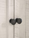• Aged iron-color hardware